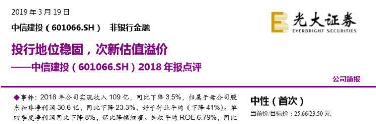 光大证券和山西证券研报对中信建投进行首次覆盖,给出“中性”评级,光大证券将目标价定为23.50元。
